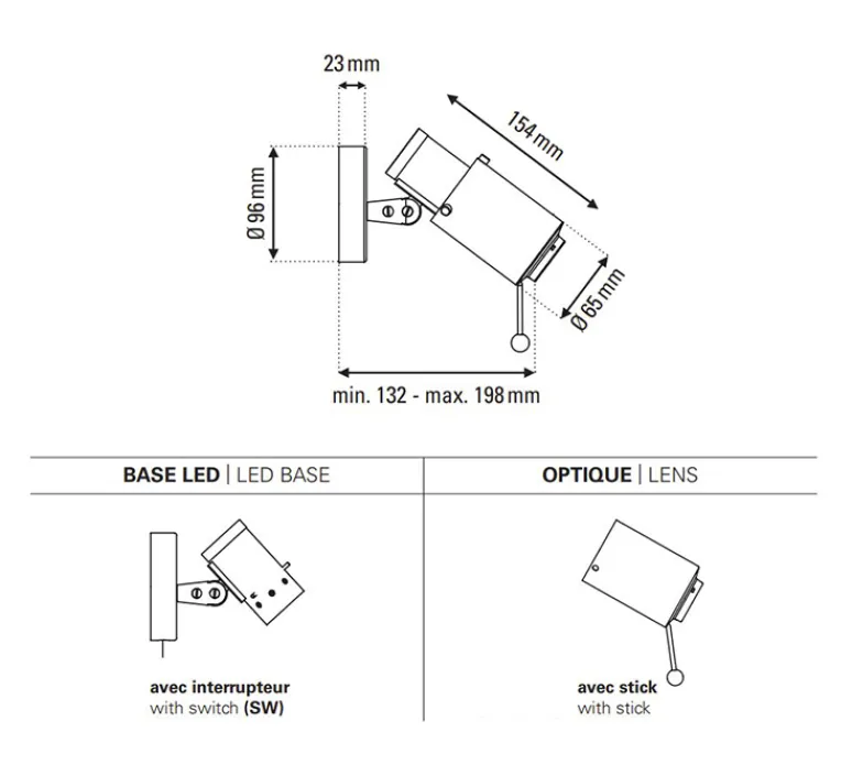 Il vous est aussi possible d’incliner le spot grâce à la poignée incrustée. De plus, il est munit d’un interrupteur pour votre plus grand confort, et de LED intégré.