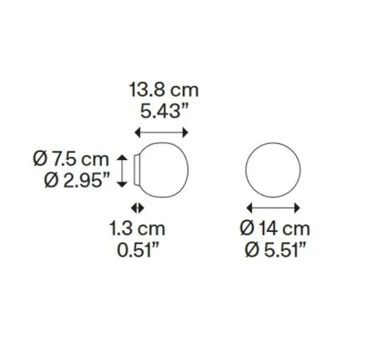 Afin de projetter un éclairage diffus à 360 degrés, l’applique murale Volum 14 nécessite une ampoule LED E14 (source non incluse) de dimensions maximales de 5 cm de diamètre et 9 cm de longueur. L’applique possède une fonction dimmable, vous permettant de régler l’intensité lumineuse selon vos préférences; pour cela il faut la compléter d’une ampoule LED également dimmable.