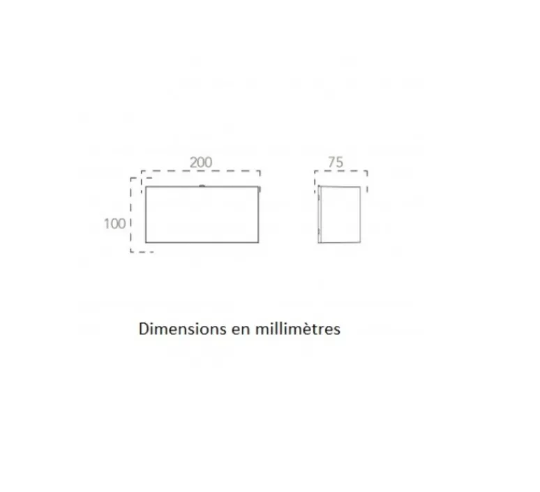 L’applique Togo Rectangle S mesure 10 cm de hauteur, 20 cm de longueur et 7,5 cm de profondeur.