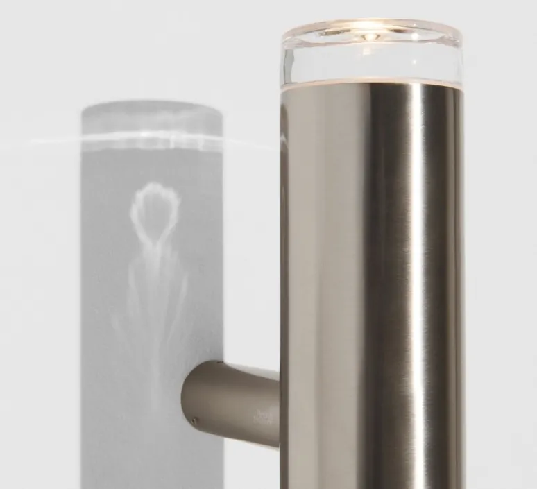 Fixée parallèlement au mur ou au plafond, cette applique/plafonnier cylindrique s’accompagne de deux disques en verre moulé qui diffusent la lumière aux extrémités. Sa forme graphique et sa finition brute en acier en font une pièce décorative architecturale, qui peut s’installer seule ou en composition linéaire pour souligner une circulation, une cimaise ou un pan de mur. Elle trouve également sa place dans les salles de bains ou extérieurs couverts grâce à son indice de protection IP44.