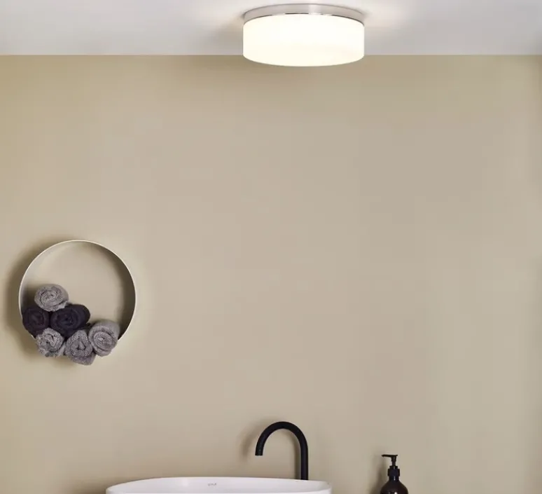 Conçu pour des espaces intérieurs, ce luminaire de 28 cm de diamètre et 9,65 cm de hauteur est doté d’une finition en chrome poli, qui s’intègre parfaitement dans des décors modernes et élégants.