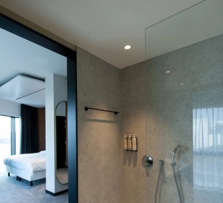 Son IP44 lui permet de résister à l’eau, il trouvera donc très bien sa place dans votre espace de douche