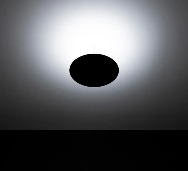 Son design circulaire et ultra-mince (Ø40 cm x H1 cm) apporte une touche moderne et minimaliste à n’importe quel espace. Le disque apparaît énigmatique et donne l’impression d’un trou noir. C’est une présence symbolique illustrant de manière poétique l’absence de lumière… Abstraction et pureté graphique sont les objectifs de cette nouvelle création de Davide Groppi. Son esthétique noire s’intègre facilement dans divers styles de décoration, ajoutant une note de sophistication à l’intérieur.