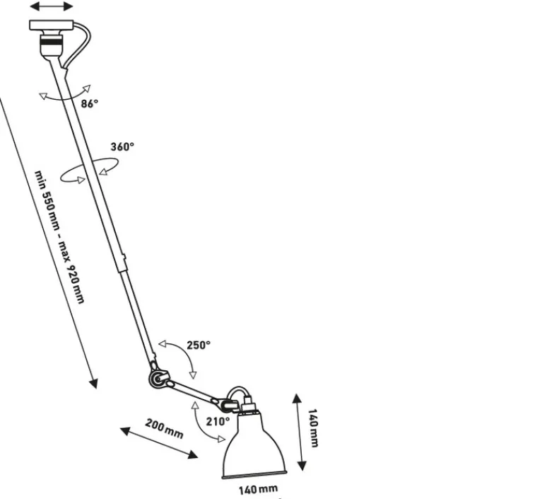 Plafonnier & Spot*DCW éditions Paris Plafonnier, N°302 Gras, , Ø14cm, L55 à 92cm – DCW Editions noir