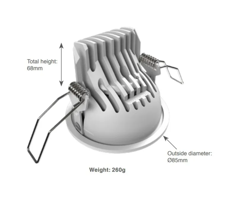 Ce spot conçu en aluminium offre une lumière de qualité éclairant vers le bas. Il est équipé d’un module LED diffusant 2700K et 1100lm, il s’accorde parfaitement à tous vos projets. Sa hauteur et son diamètre mesurent respectivement 6.8cm et 8.5cm. Nous préconisons une hauteur de 2cm pour le faux plafond afin d’installer confortablement le spot.