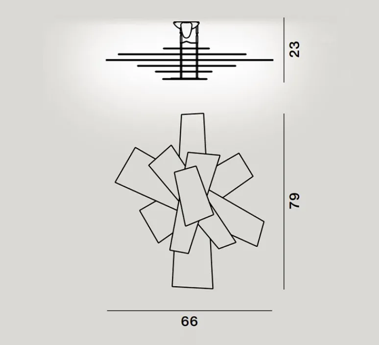 Le luminaire Big Bang se présente comme une explosion apparemment chaotique de panneaux. Dynamique et créatif, Big Bang se place dans chaque espace intérieur, que ce soit dans une chambre, une entrée ou un couloir.
