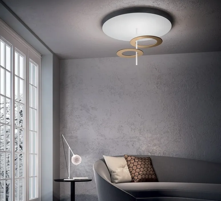 Ce plafonnier à l’allure art déco est idéal pour apporter une touche design à vos intérieurs. Les anneaux lumineux sont respectivement composés de 2 700 k et de 3 000 k afin de créer un bel éclairage indirect.