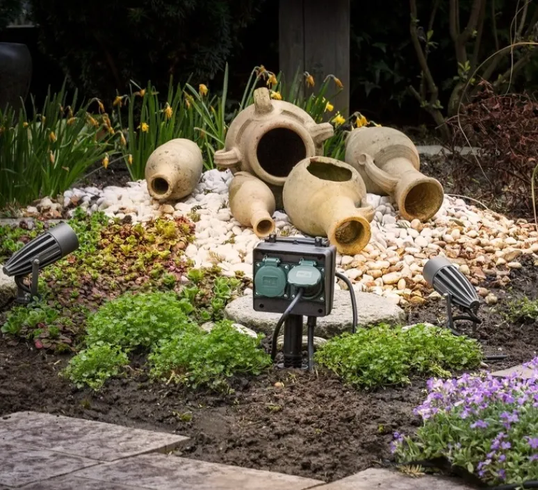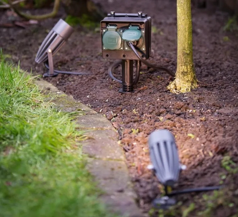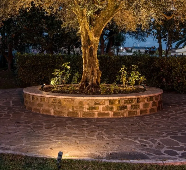 Syna est un projecteur d’extérieur qui se plante au sol où vous voulez dans votre jardin.