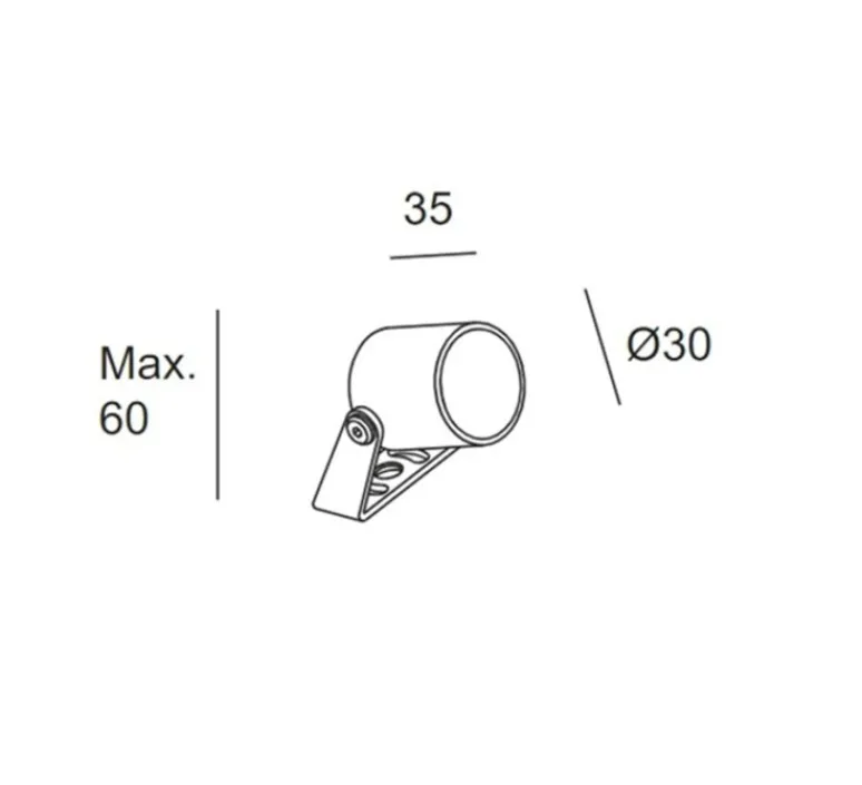 Ce spot compact mesure 3 cm de diamètre et 3,5 cm de hauteur. Il est équipé d’une source LED intégrée de 3W.