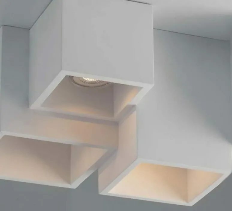Le plafonnier en plâtre Charlotte composé de 3 cubes de tailles différentes habille votre plafond avec esthétisme. Le luminaire émet une lumière directe vers le bas, créant un éclairage directionnel idéal dans les passages tels que les couloirs, les entrées et les pièces à vivre telles que les cuisines ou les bureaux. Ce plafonnier est parfait pour tous les environnements et styles d’intérieur. Sa finition en plâtre lisse naturel peut être laissée inachevée ou peinte pour correspondre à n’importe quelle palette de couleurs de votre plafond.