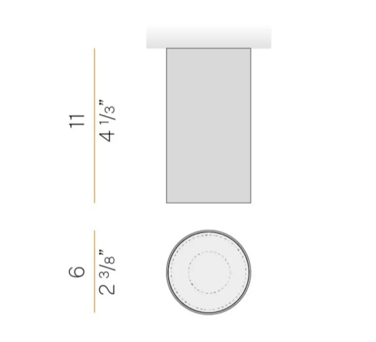 Le plafonnier mesure 6cm de diamètre et 11cm de hauteur.