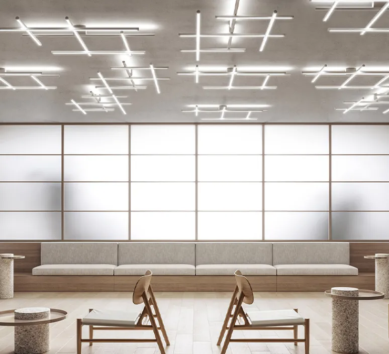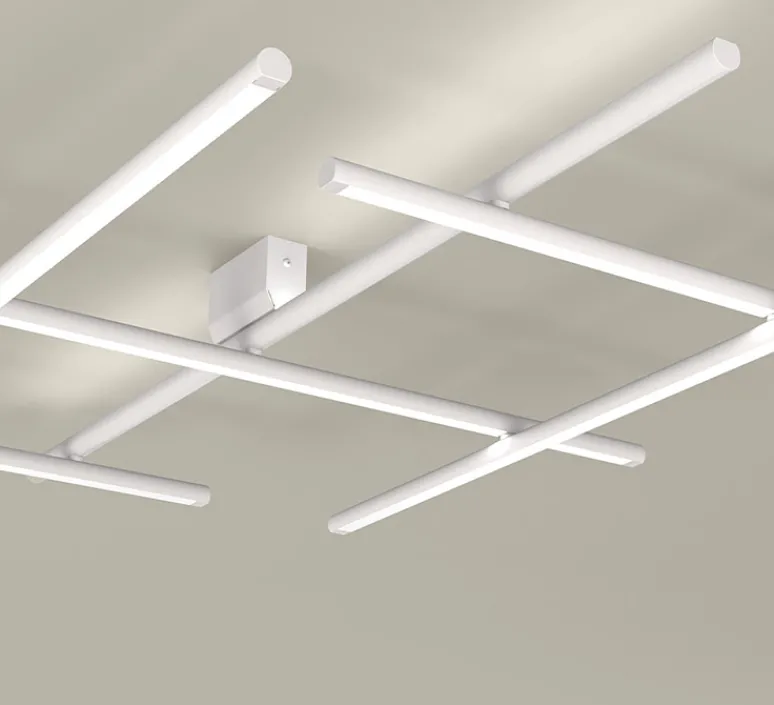 Le luminaire Hilow se compose d’un base plafond intégrant un transformateur et d’une structure faite d’une combinaison de six éléments linéaires transversaux et longitudinaux, cinq offrant un éclairage direct, un offrant un éclairage indirect. Libre et intuitif, le plafonnier Hilow s’installe individuellement ou à plusieurs, dans une pièce de vie, une entrée ou une chambre.