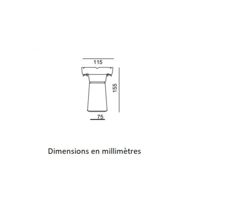 - L 7.5cm x H 15.5cm x P 7.5cm