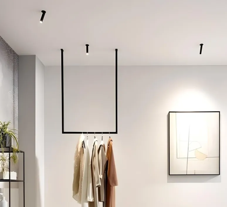 Il est composé d’une base encastrable sur laquelle est fixé un spot orientable. Ce plafonnier, de forme cylindrique, peut être dirigé dans différentes directions grâce à une petite tige qui le relie à la base, facilitant ainsi son orientation.