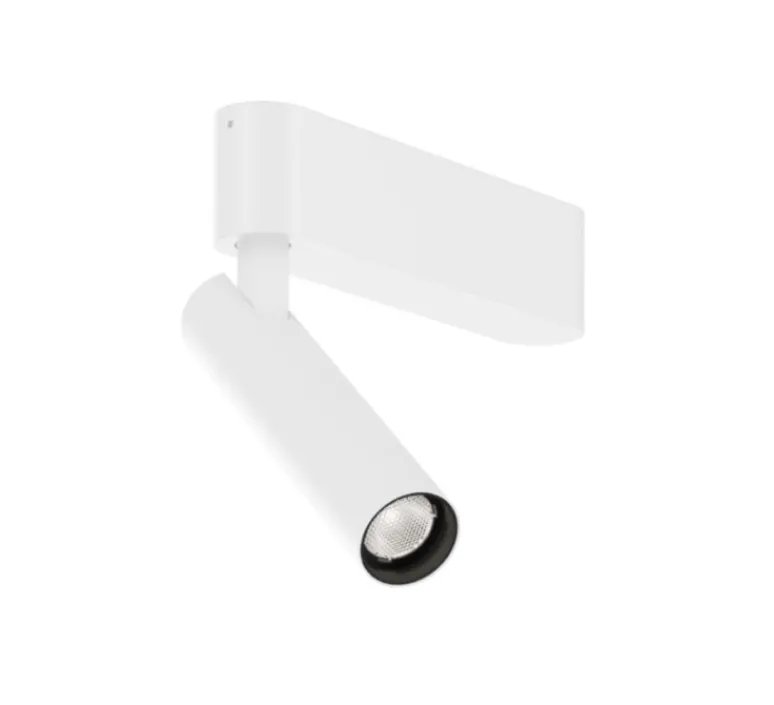 Il se compose d’une fixation au plafond sur laquelle est positionné un spot orientable. Le spot est cylindrique et peut s’orienter dans toutes les directions. Il est disposé de manière asymétrique sur la fixation pour un esprit plus moderne.
