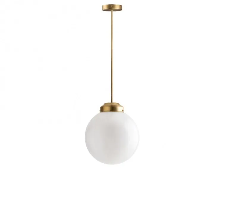 Ce plafonnier en laiton et verre soufflé éclaire votre intérieur avec esthétisme et raffinement. L’aspect velouté du verre se marie harmonieusement avec la finition dorée du laiton de cette suspension au style vintage et intemporel.