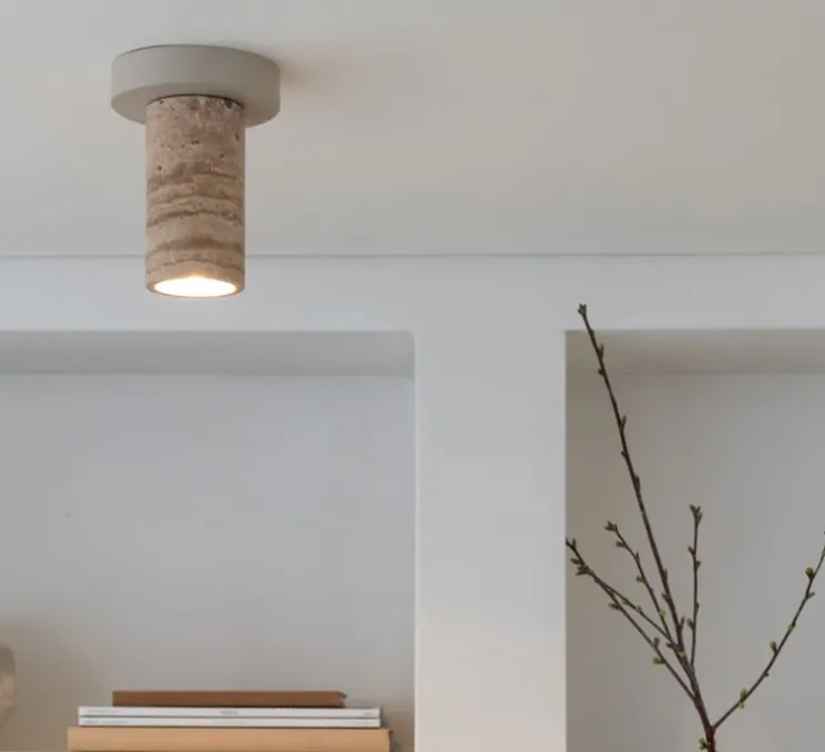 Conçu en marbre sable, il se distingue par son aspect naturel et intemporel. Sa présence discrète habille le plafond tout en apportant une note décorative. Grâce à sa teinte sobre, il s’intègre facilement aussi bien dans un espace de vie que dans une entrée.