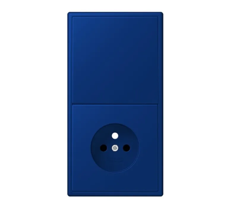 Dans la prestigieuse collection LS 990 de la marque Jung, découvrez l’Interrupteur et Prise Double vertical dans une sublime teinte Le Corbusier Bleu outremer foncé 4320T.