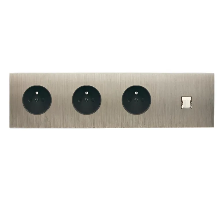 La prise électrique quadruple horizontale de la collection Confidence de Modelec est un accessoire incontournable pour votre installation électrique haut de gamme.