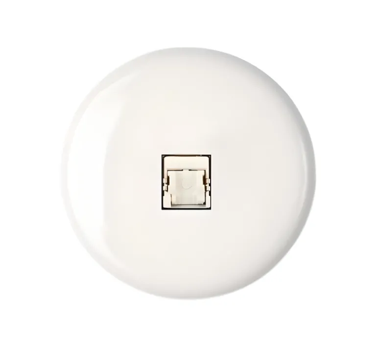 Découvrez la prise simple RJ45 en porcelaine blanche de la collection Iris par Modelec.