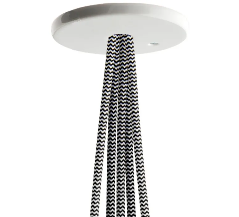 La rosace en porcelaine est vendue avec 5 S de fixation de câble électrique à placer à l’intérieur de la rosace. La visserie est fournie pour ce produit avec un boitier à encastrer en 68 mm de diamètre et 50 mm de profondeur.