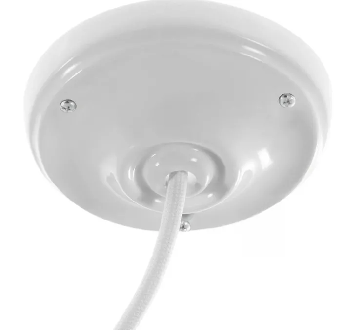 La rosace en porcelaine mesure 10,5 cm de diamètre, offrant une dimension idéale pour divers styles de décoration intérieure. Conçue pour être polyvalente, elle permet d’adapter facilement votre suspension en fonction du rendu final désiré, en choisissant le câble textile et la douille qui correspondent le mieux à votre ambiance. Cette rosace devient ainsi un élément central de votre design tout en assurant une installation pratique et sécurisée.
