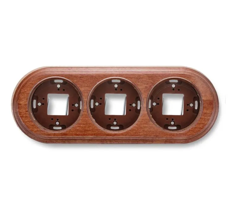 La marque Fontini présente sa collection Garby avec le socle Triple horizontal en hêtre couleur miel.