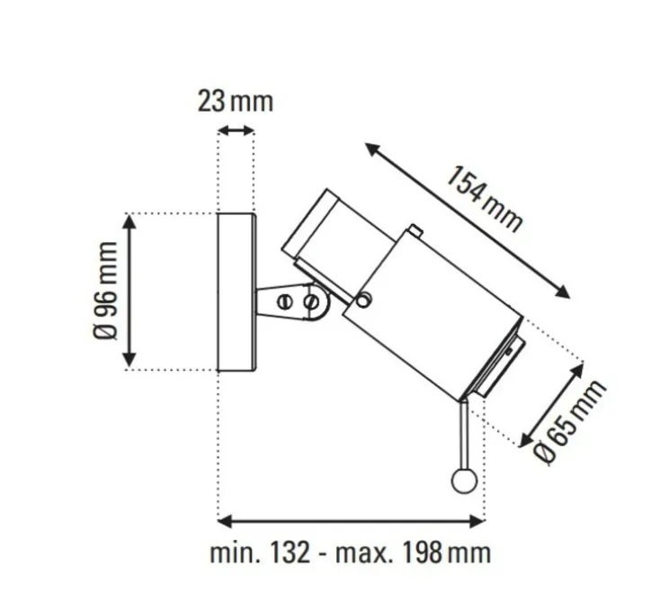Ses dimensions sont de 15 cm de hauteur, de 19,5 cm de longueur maximum et sa base mesure 9,6 cm. L’ampoule GU10 n’est pas fournie, nous préconisons une puissance maximale de 5W pour une utilisation optimale. Biny possède un interrupteur ce qui le rend idéal en liseuse.