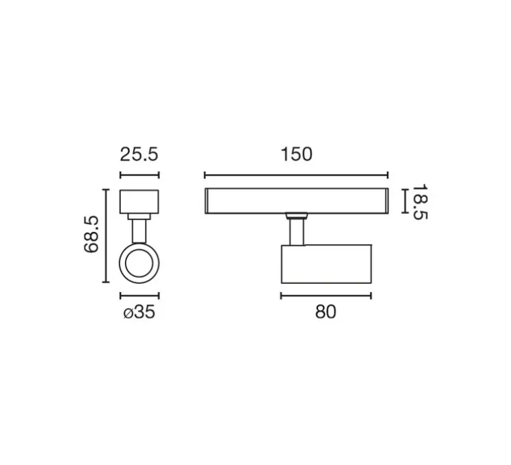 L’applique mesure 3,5 cm de diamètre et 6,85 cm de hauteur. Le module LED intégré d’une puissance de 5W diffuse 335 lumens avec une colorimétrie de 2700K. Driver non inclus. Dimmable CASAMBI. Possède un IRC de 90, promettant un rendu réaliste des couleurs. Orientation verticale vers le bas : 90°. Orientation horizontale : 350°.