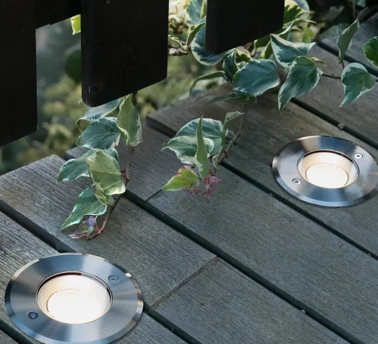 Cette jolie lampe très discrète est conçue pour s’encastrer au sol et éclairer votre extérieur.