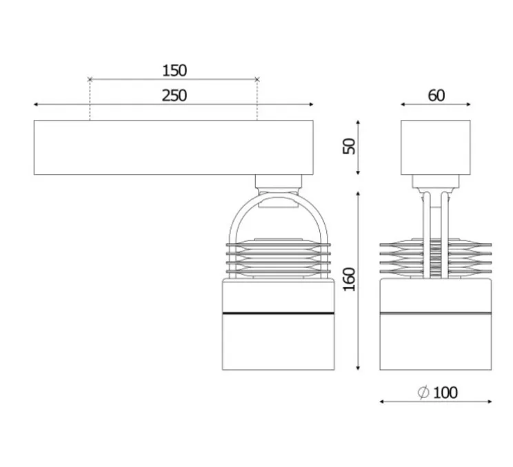 Le spot mesure 10cm de diamètre pour 16cm de hauteur.