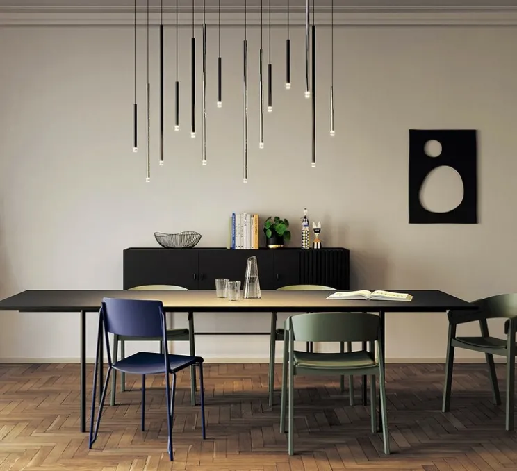 A-Tube Nano se caractérise par une forme tubulaire et un fini noir mat, offrant un aspect sobre et sophistiqué. Recommandée pour une décoration intérieure moderne, elle apporte une touche d’originalité à tout espace. Avec la possibilité de créer des compositions intéressantes en combinant différentes tailles et couleurs de suspensions Tube Nano, elle offre une flexibilité de conception remarquable.