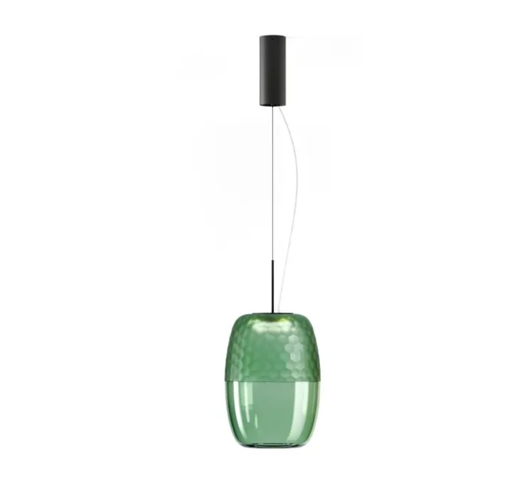 La suspension Adamas, conçue par Enzo Panzeri pour la maison italienne Panzeri, est une ode à la beauté du verre soufflé et au savoir-faire artisanal.