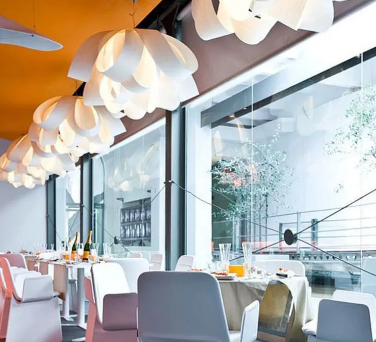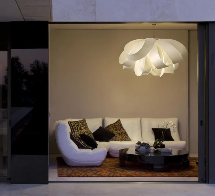 La suspension Agatha coloris ivoire blanc de Ø140cm a été imaginée par Luis Eslava Studio et éditée par la maison espagnole LZF.