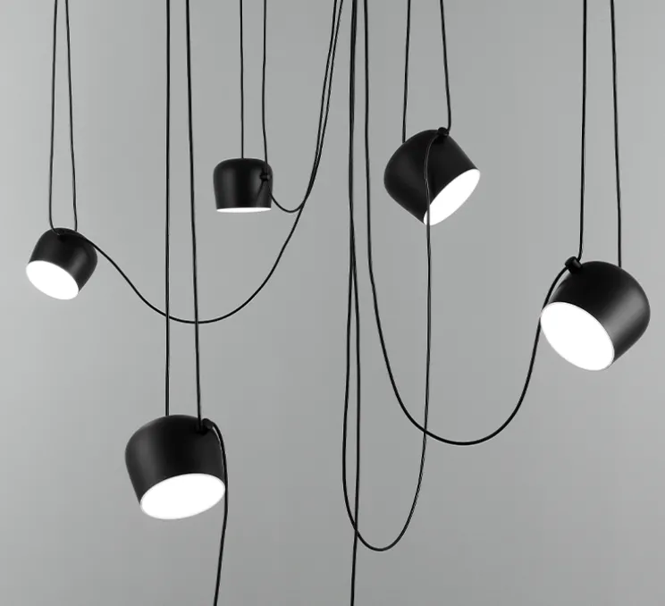 Aim (3 Aim, 2 Aim Small + rosace multiple) est une suspension dessinée par les frères Bouroullec en 2013 pour Flos.