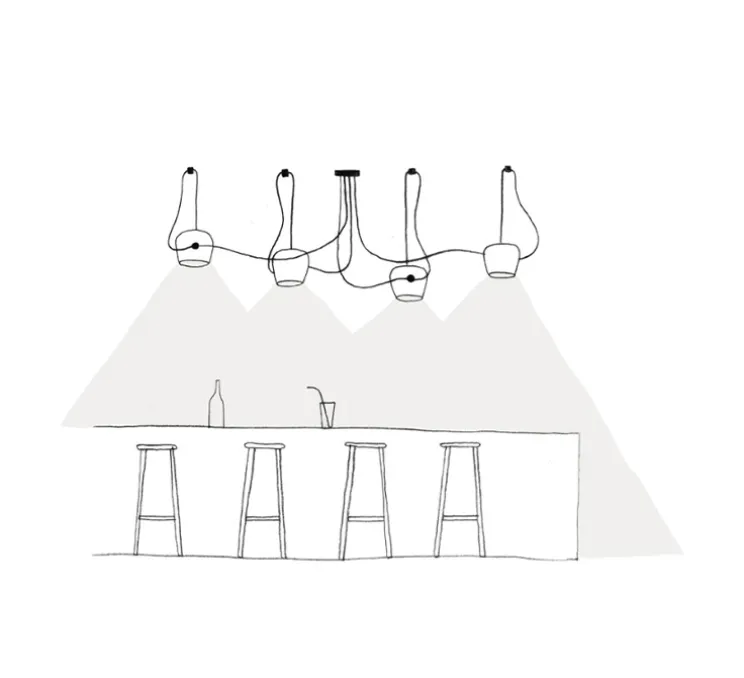 Aim est composée des deux éléments essentiels d’un luminaire : un diffuseur et un câble. En dessinant Aim, Erwan et Ronan Bouroullec s’inspirent de la nature et veulent créer un luminaire pouvant s’adapter à chaque utilisateur, chaque espace, chaque situation. Aim se positionne naturellement dans son environnement, ses têtes orientables éclairant leurs alentours. A deux, trois, quatre ou cinq, Aim crée une vibrante jungle de câbles, se développant telles les branches d’une plante grimpante, au grès des besoins de la vie. Grâce à ses longs câbles, Aim peut se placer n’importe où : dans un angle d’entrée, au centre d’un salon ou au-dessus d’une table à manger.