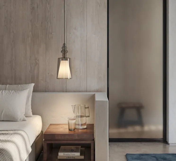 Avec sa silhouette conique en pyrex bronze, Alibaglass joue sur la lumière et les contrastes pour créer une atmosphère aérienne et sophistiquée. Déclinée en plusieurs finitions, elle s’adapte à divers styles décoratifs. Idéale en suspension unique ou en composition, elle sublime aussi bien un salon qu’un espace de réception.
