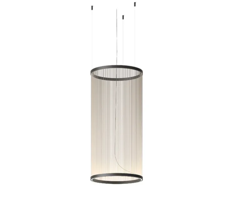 La disposition stratégique des fils crée de la translucidité et du volume, tandis que l’effet de superposition donne l’illusion du mouvement. En suspension au-dessus, Array projette une lumière agréable émise par une source invisible dissimulée dans l’anneau inférieur. Simultanément, une lumière indirecte se diffuse vers le haut, créant un dégradé de couleurs et enveloppant l’espace qu’elle occupe plutôt que de l’envahir.
