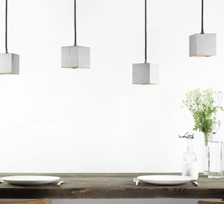 Avec une longueur d’arête de 10 x 10 x 10 cm, la lampe convient à la fois individuellement, mais aussi dans une table, une longue table, un buffet, un bureau, un bar ou n’importe où dans la pièce. Grâce à son design minimaliste et aux matériaux contrastés – béton et or, le concepteur peut être combiné avec n’importe quel style.