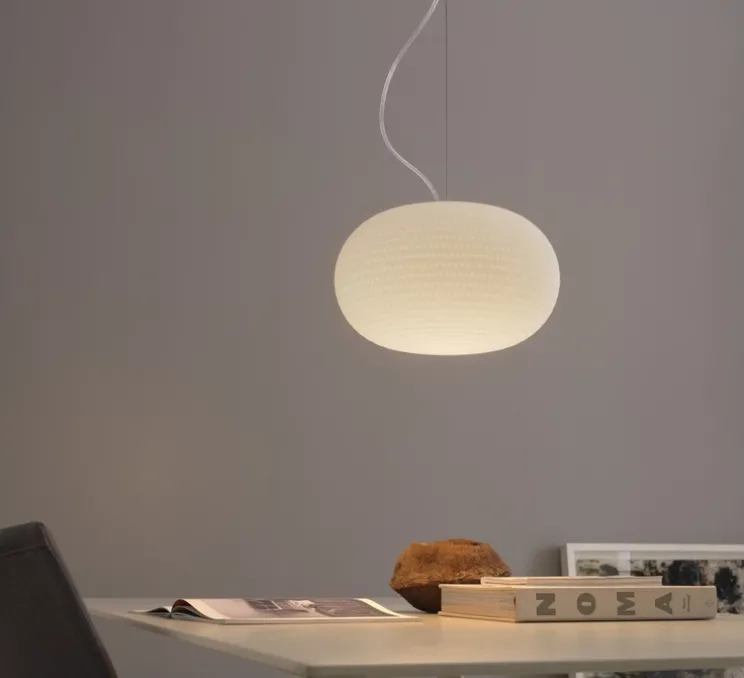 La suspension Bianca existe 3 diamètres différents, celle ci est la taille médium. et en versions lampadaire, plafonnier, applique murale et lampe à poser.