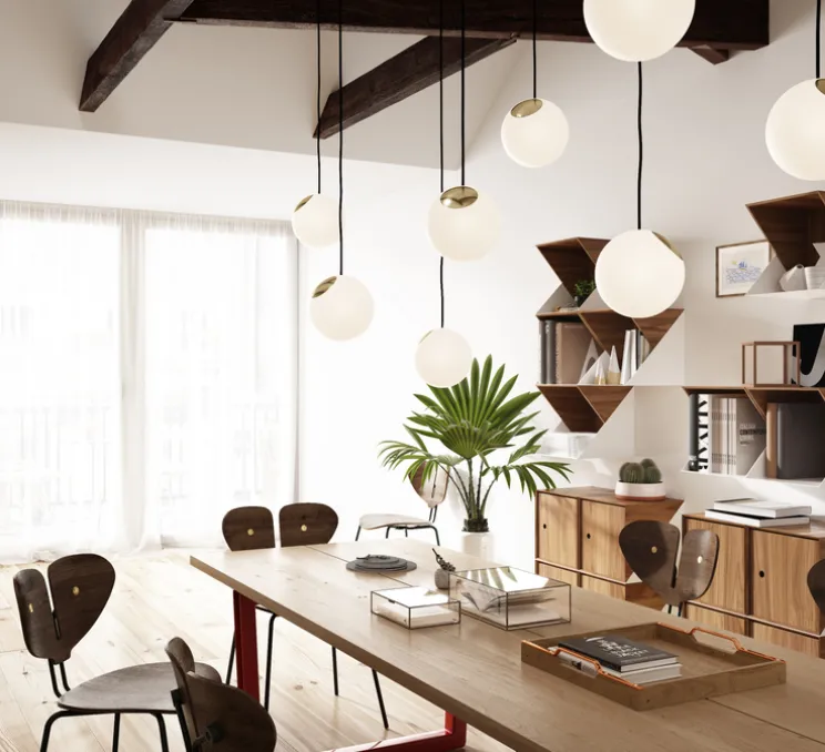 Celles-ci peuvent aussi éclairer les salons et les cuisines en apportant un style scandinave à la décoration. Sa surface en laiton et en verre opalin confère une ambiance douce et feutrée aux intérieurs.