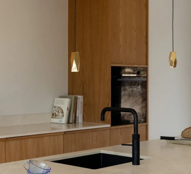Combinaison entre l’abat-jour Hexa et la rosette mini noir, cette suspension est marquée par un design danois géométrique et nouveau. Le luminaire a une magnifique composition en laiton massif.