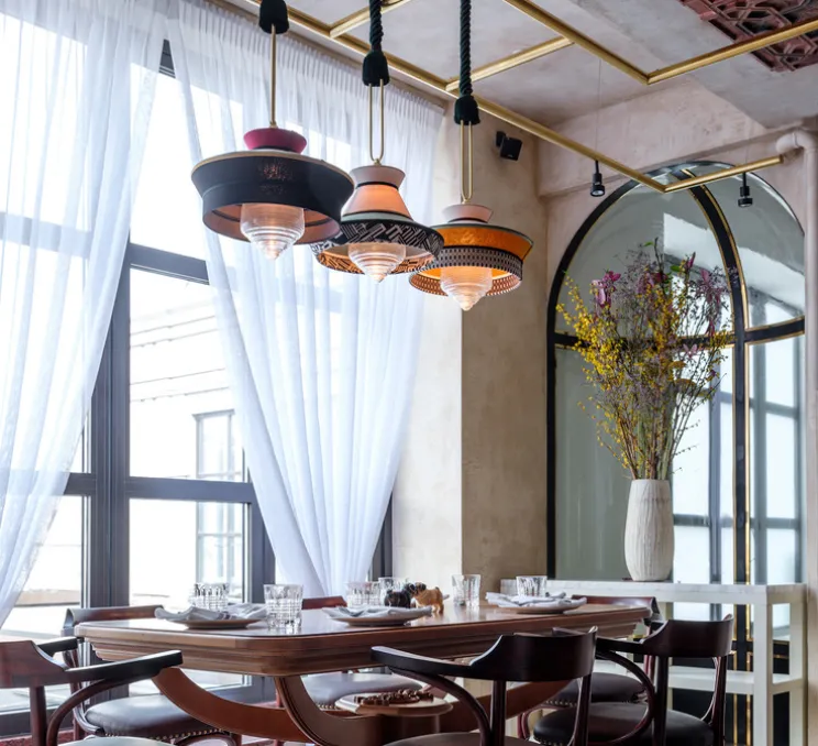 Le studio de design Servemuto met en avant à la fois la culture sud-américaine et la culture des tropiques en dessinant des suspensions inédites inspirées des luminaires des années 1940.