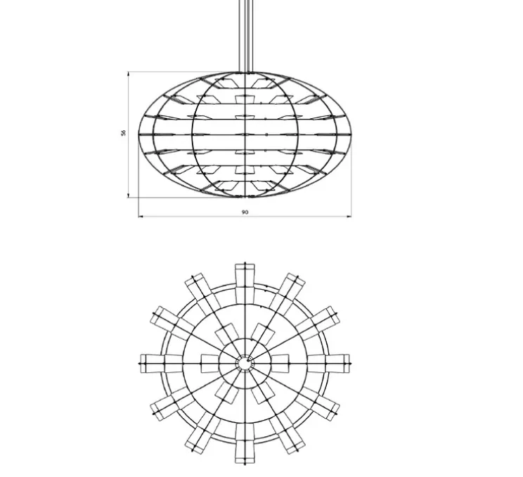 D’un diamètre de 90 cm et d’une hauteur de 56 cm, Chloris est équipée d’une source LED dimmable, permettant de régler l’intensité lumineuse entre 2500K et 3000K pour une qualité d’éclairage optimale (IRC > 90). Le câble noir de 2,5 m offre une installation flexible, adaptée à diverses hauteurs sous plafond.
