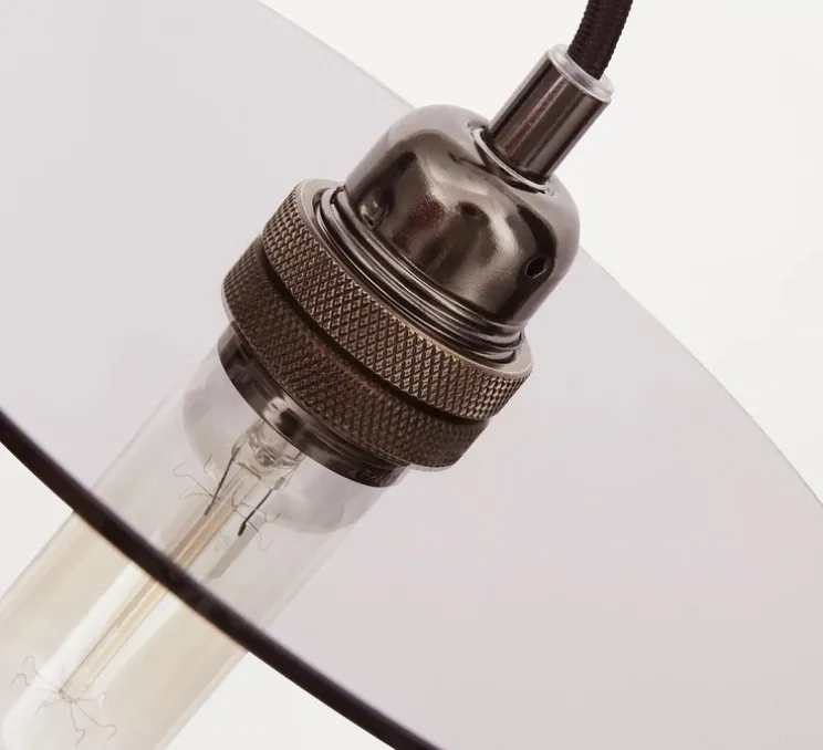 Voici l’étonnante suspension Circle Shade Verre Fumé conçue par le duo de designer Included Middle.