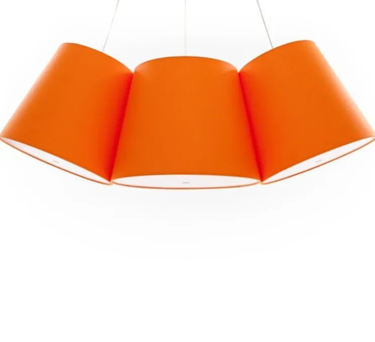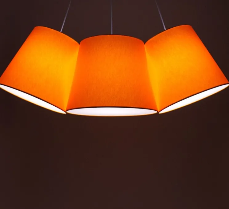 Plusieurs coloris sont disponibles, ici les lampes sont oranges. Vous pouvez également commander les suspensions individuellement sur demande.