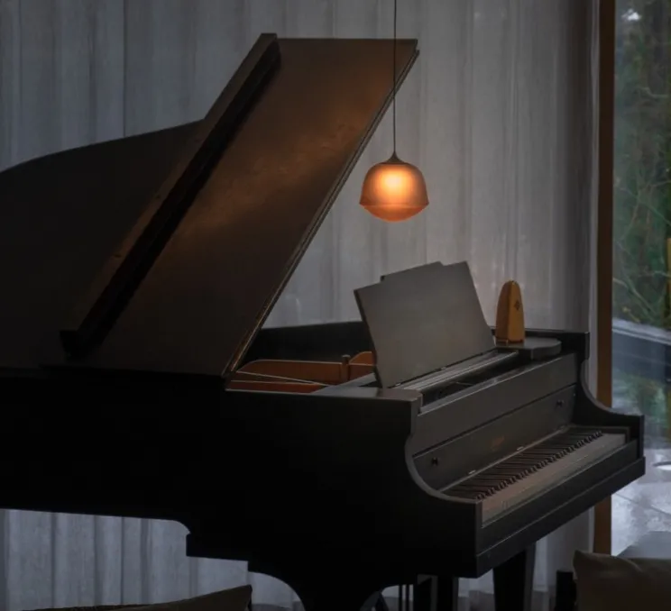 Issue de la collection Contour lancée en 2025, elle explore une forme unifiée et fluide, en accord avec l’approche sobre du designer. Pensée pour les intérieurs, cette suspension fait partie d’une série déclinée également en version applique, lampe de table ou lampadaire, dans une même logique de cohérence formelle.