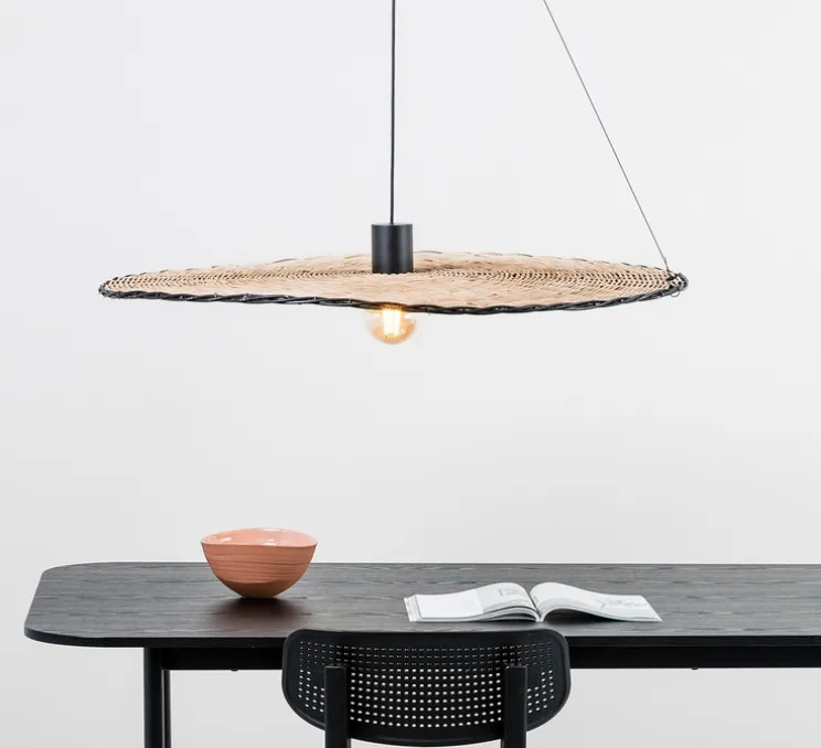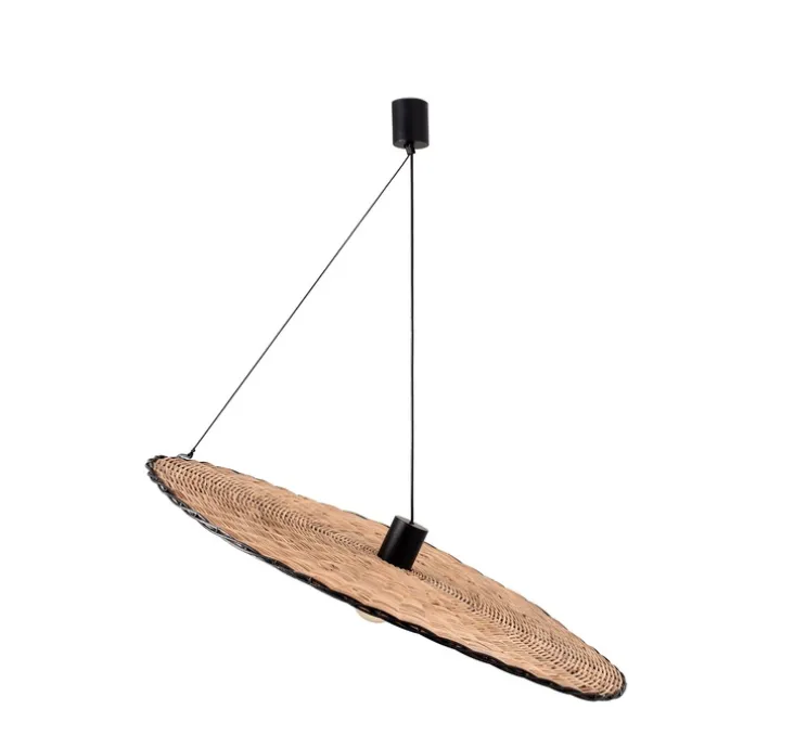 La spécificité de cette suspension repose sur son abat-jour entièrement réalisé en rotin. Cet aspect du luminaire offre un style à la fois minimaliste et méditerranéen. La Costas 1000 s’installe idéalement en intérieur dans n’importe quel espace, la suspension apporte une subtile touche naturelle et chaleureuse. L’ampoule est visible et offre une diffusion lumineuse directe dans votre séjour. Le rotin est une matière durable et résistante face aux intempéries, il est également économique en plus d’être facile à entretenir.
