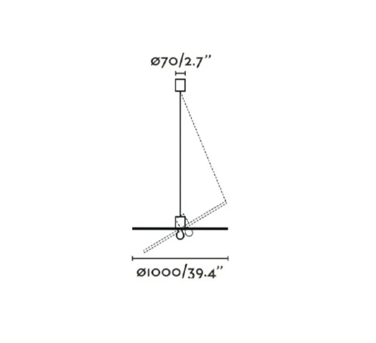 L’ampoule LED n’est pas incluse, il est recommandé d’utiliser une ampoule E27 avec une puissance maximale de 15W. Non dimmable, driver non requis. La rosace noire est incluse ainsi que le câble en acier d’une longueur de 1,5m. L’abat-jour mesure ⌀100cm et 2cm de hauteur.