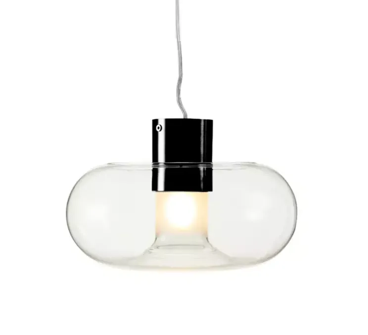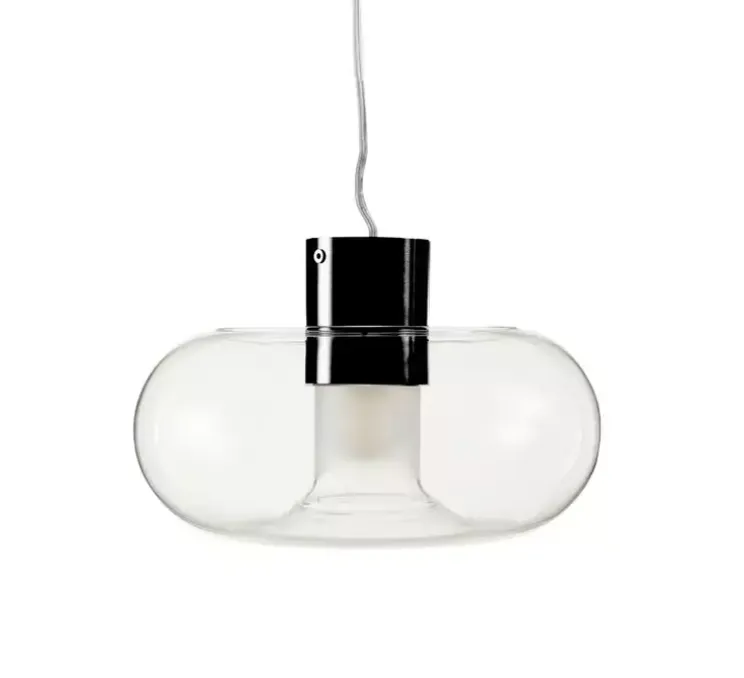 Fontanella est formée par l’assemblage de deux pièces de verre : le tube intérieur est fileté, sablé et enfin assemblé avec le verre soufflé en forme de bulle. Le raffinement du travail réside dans l’assemblage manuel des deux parties, qui requiert la technique habile d’un artisan. En outre, le verre, qui a toujours été le matériau par excellence des produits FontanaArte, est le verre résistant le plus cristallin du marché. Le métal sert de base et contient la source lumineuse tandis que le verre, véritable protagoniste du projet, est habilement travaillé par d’habiles artisans dans un processus de fusion entre une portion de verre transparent et une autre satinée d’où se diffuse la lumière.